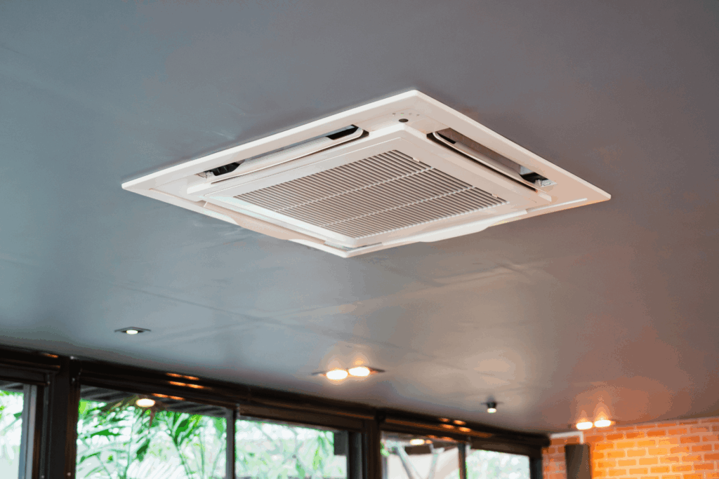 Cassette AC units are ideal for spacious residential areas, providing balanced airflow and efficient cooling from the ceiling.